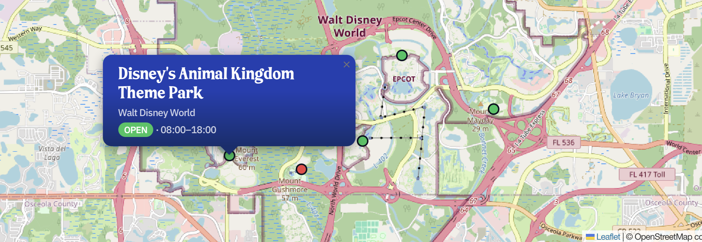 The map updates automatically using live data provided by ThemeParks.wiki, so you always see the most up-to-date information.